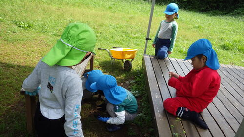 今日は久しぶりに畑で遊べて大喜び!野いちごを採ったり、虫を探したり、おままごとをしたり…それぞれ楽しんでいました。今年はこの雨続きの天候の影響か、野いちごがあまり採れず・・・。でも見つけた時にはとっても嬉しそうです(^^♪ 明日から連休になりますが、ケガや病気のないよう元気にお過ごしください。 本日長靴も持たせますのでサイズチェックをし洗って連休後持たせてください。