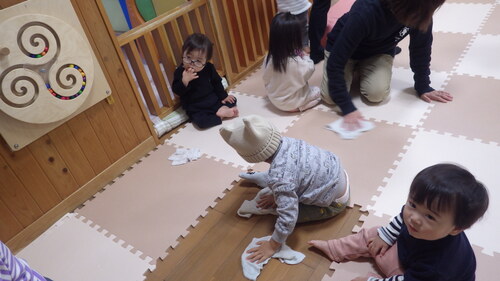 今日は年内最後の登園日でしたね!あいあかぐみさんでは、ありがとう!という気持ちを込めて、お部屋とホールの拭き掃除をみんなで頑張りましたよ✨