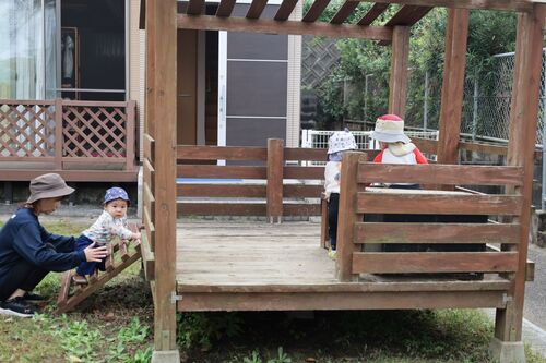 本日もお外で遊んだあい・あか組さん。寒いのかと思いきや湿度のせいか暖かいお外お遊びでした。あちこちと歩き回り探検隊の様でしたよ。ログハウスに必死に登ったりお友だちの乗ったカートを押したりと良い運動になりました。食欲も旺盛でよく食べよく寝ていました。