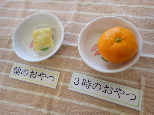 今日のメニューは・・・ 朝のおやつが、蒸しぱん。 お昼のご飯が、お弁当。 3時のおやつが、みかん。 今日は、子ども達の間に待った遠足。 お弁当に子どもたちは、大喜び♪ お弁当、大変お世話になりました!