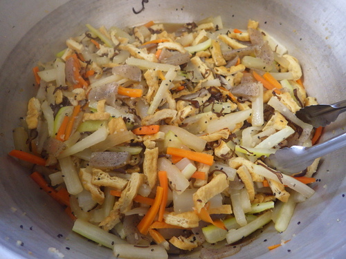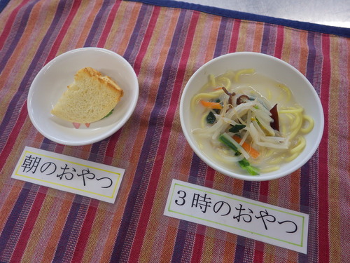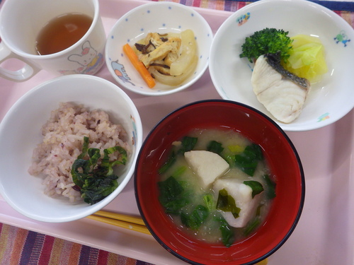 本日のメニューは・・・ 朝のおやつが、手作りぱん。 お昼のご飯が、 黒米一分づきご飯 お魚(すすき)のセイロ蒸し 大根の塩麹炒め 呉汁。 3時のおやつが、ごま豆乳担々麺。