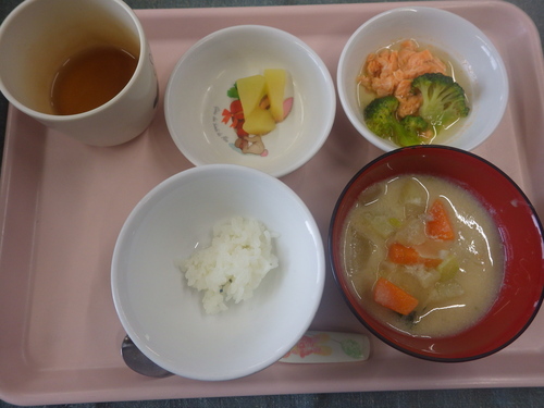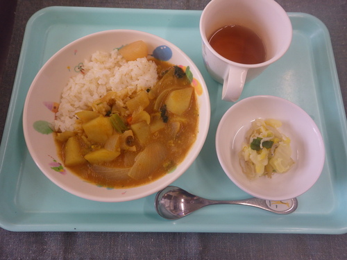 今日のメニューは・・・ 朝のおやつが、豆乳くずもち。 お昼のご飯が、もちあわ一分づきご飯 冬野菜たっぷり奄美カレー・白菜とじゃこネギのおひたし。 3時のおやつが、おからとレモンの焼きけーき。